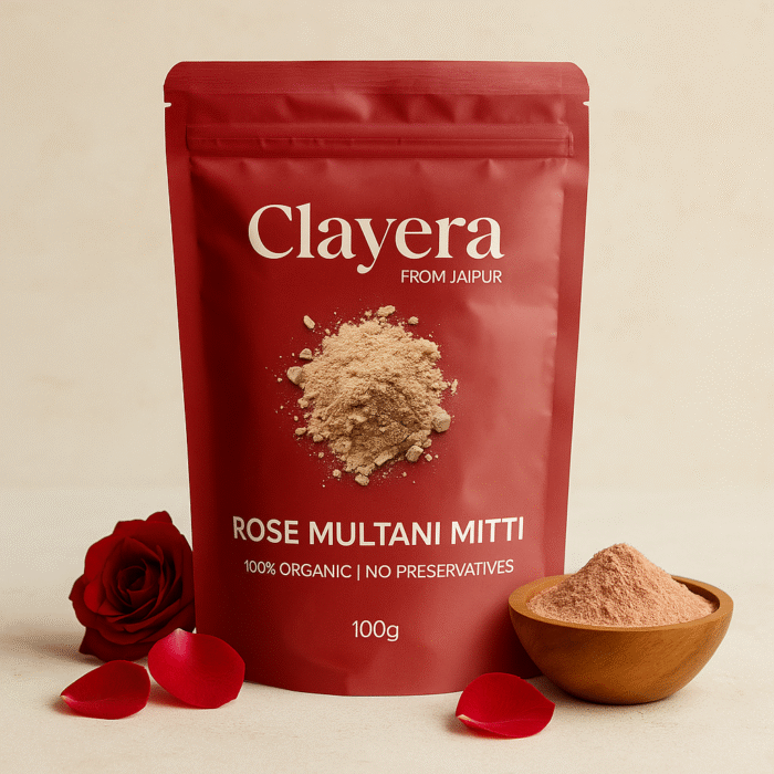 Give your skin a petal-soft makeover with Clayera Rose Multani Mitti Powder—earthy detox meets floral nourishment for radiant, balanced beauty.